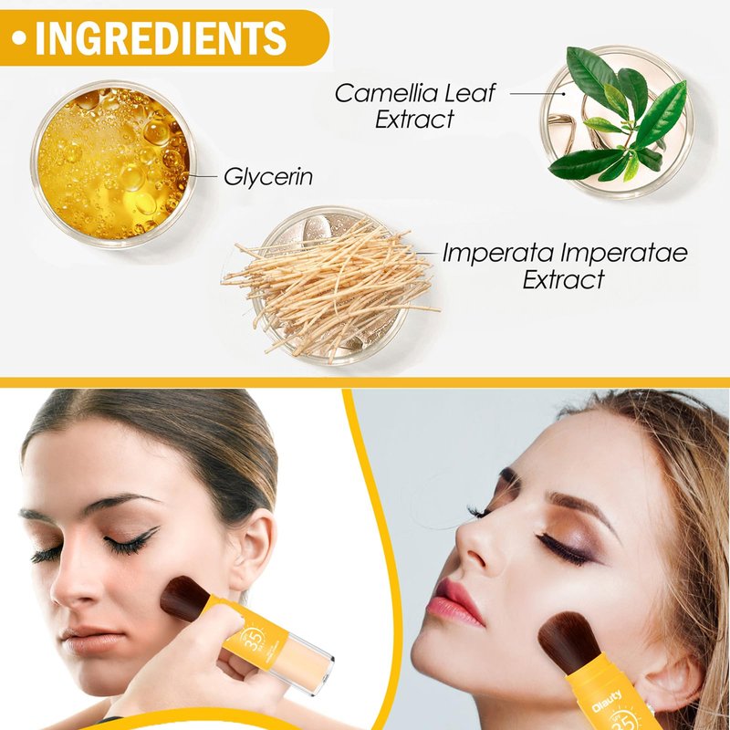 - 【How to use】Before use, please invert the product so that the sunscreen setting powder reaches the end of the brush head. After applying your make-up, brush our setting powder evenly over your face to set your makeup. The mineral setting powder allows you to set makeup, mattify shine and refresh protection for your skin in one swoop. Compact and portable design makes quick make-up touch-ups easy.