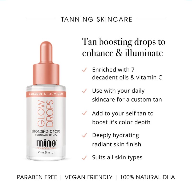 Enriched with 7 decadent oils & vitamin C for a luxurious skin finish, these clean tan boosting drops enhance & illuminate your skin. Illuminating Glow Drops suits all skin types and tones for those wanting to customize their face + body tan with a deeply hydrating, glowing skin finish.