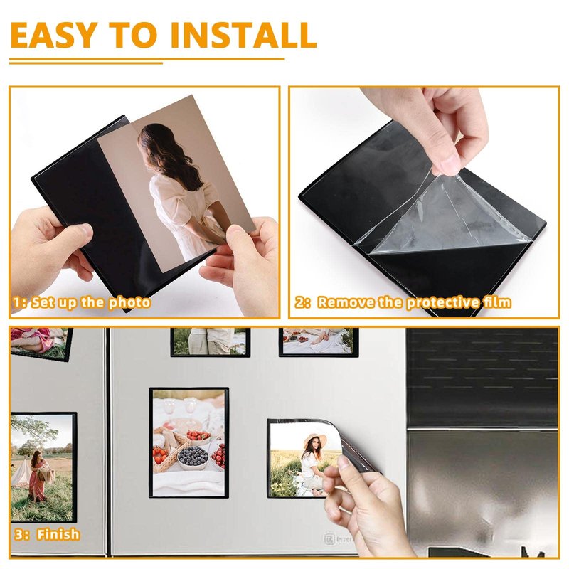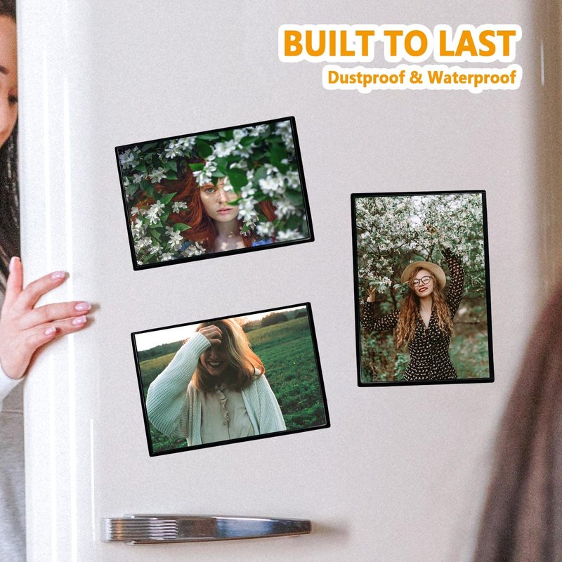 - 🖼️【Magnet Picture Frames for Fridge】The reusable magnetic frame has strong magnets on the back, this entire magnetic is strong enough to hold pictures flat and securely, pictures never slide out of place no matter horizontally or vertically displayed .