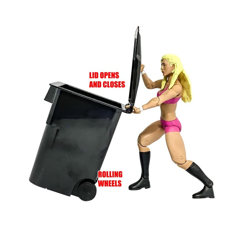 Mini Black Trash Can with Lid & Wheels for Wrestling Action Figures