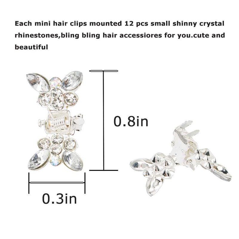 Mini Crystal Hair Clips, Sparkly Rhinestone Hair Claw Clips Small Hair Clips Cute Bling Hair Clips Flower Butterfly Hair Claw CLips Tiny Metal Hair Clips for Jewlery Hair Clips Hair Accessories for Women By highlighting the product's high quality, unique design, eye-catching diamond decoration, diverse color selection, and practical craftsmanship, you can effectively showcase its competitiveness on the Amazon platform.