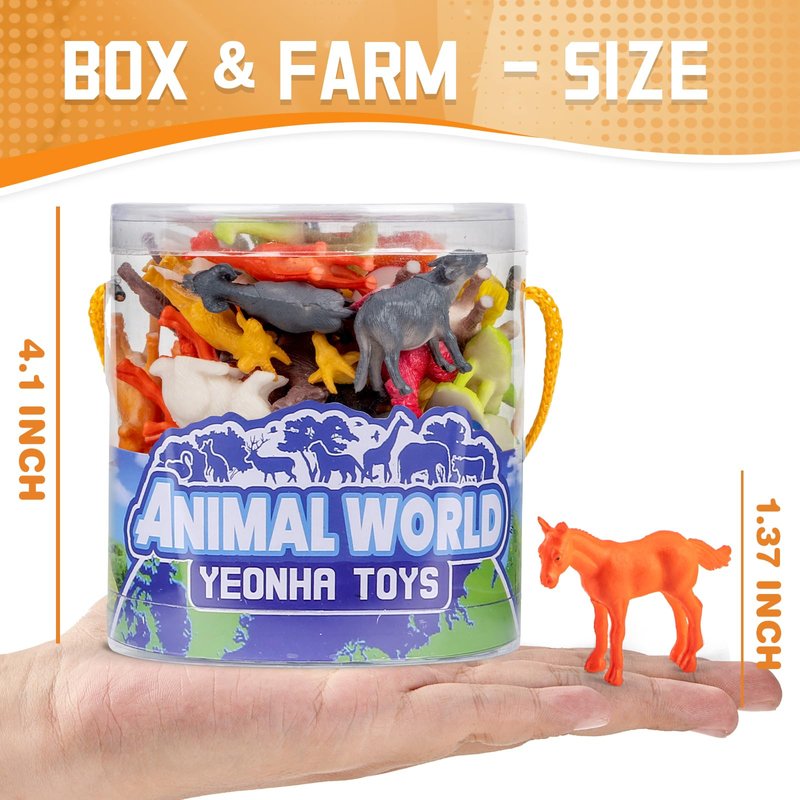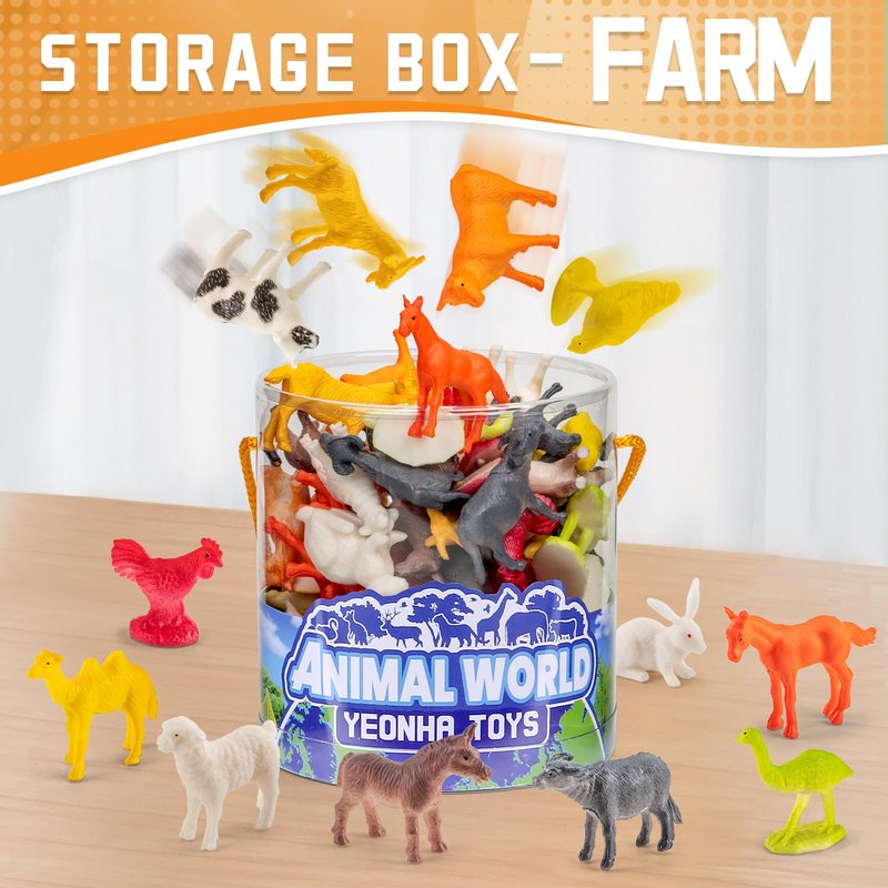 - Easy store: Realistic farm animal toys have a round, clear bucket that is round and does not hurt toddler's hands. The bucket comes with a strong hand rope to make this cute small toy easy to store and carry outside