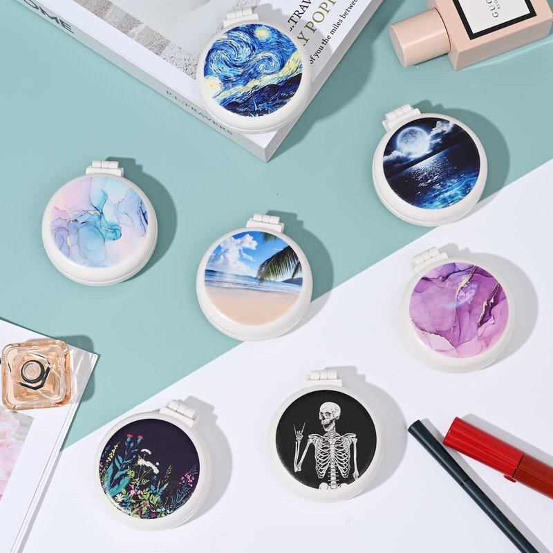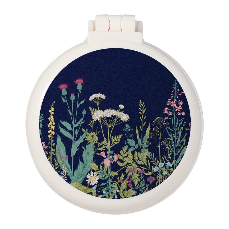 Mini hairbrush, pocket hairbrush with mirror, portable for purse/pocket, travel size (Black flowers and plants)