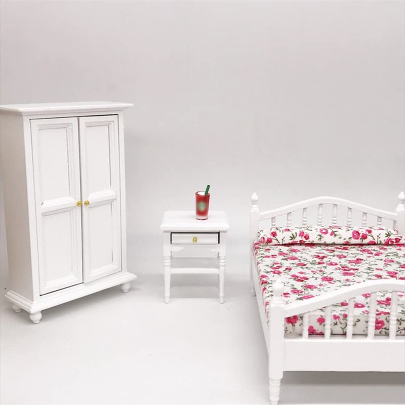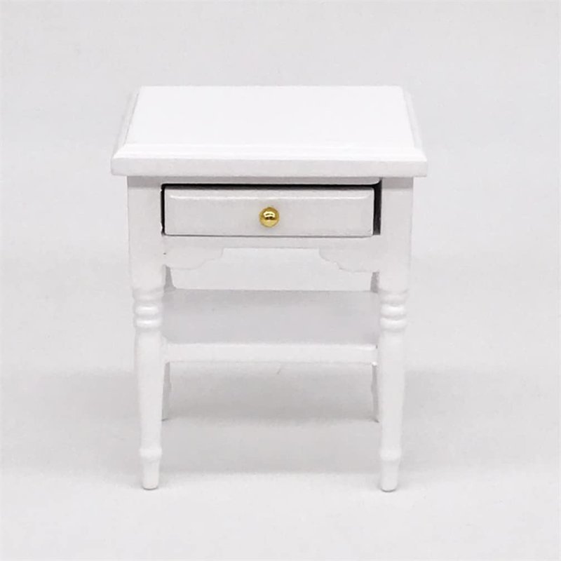 Mini House Furniture 1pc Dollhouse Miniature Furniture Bedroom Night Stand Small Side Table White Wood Bedside Table Handcraft DIY Model