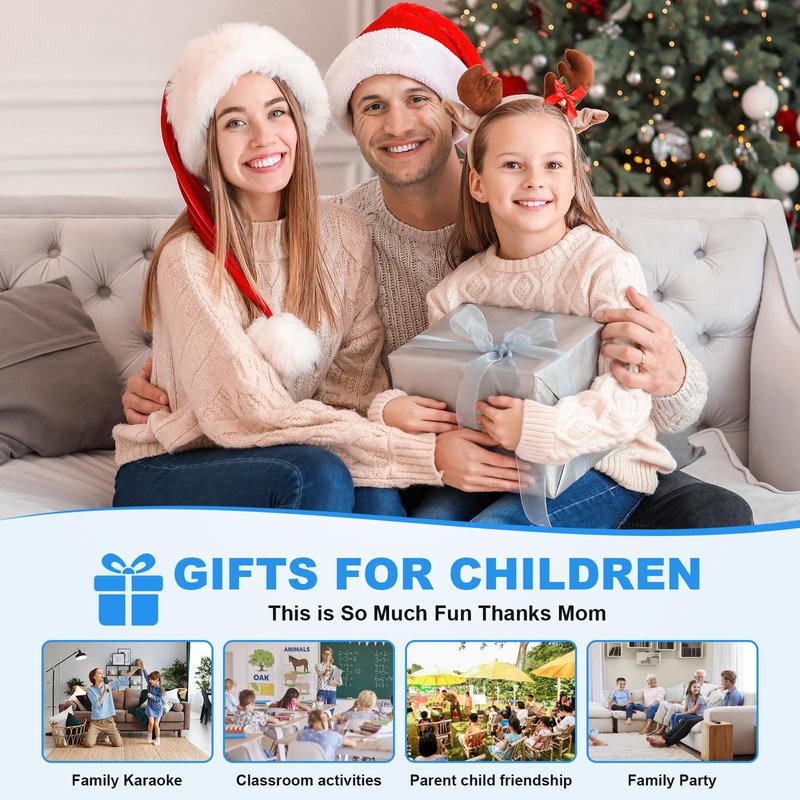 - 【Best Gift for Kids Growth】- Perfect for home karaoke, mobile singing, classroom activities, parent-child bonding, and family gatherings, this kids' karaoke machines is a versatile tool for entertainment, education, and social fun. It's an ideal gift that keeps kids entertained while also serving as a valuable interactive tool.