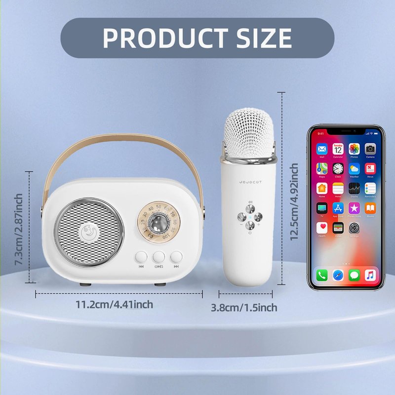 - Portable Fun: Portable bluetooth speaker withwireless microphone light weight, compact and portable, Type-C charging cable ensures quick recharges, offering up to 4hours of playtime on a single charge