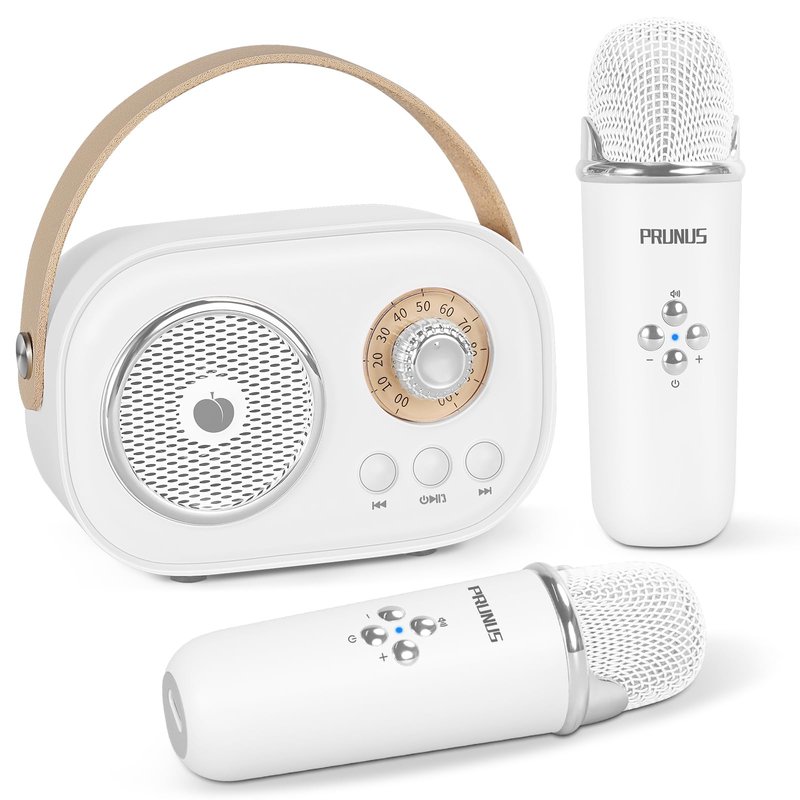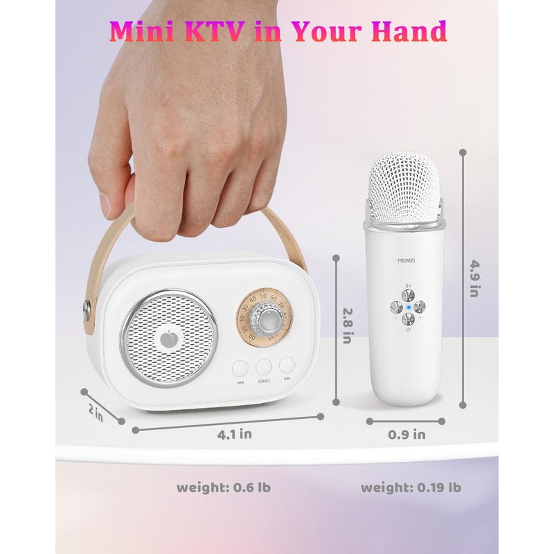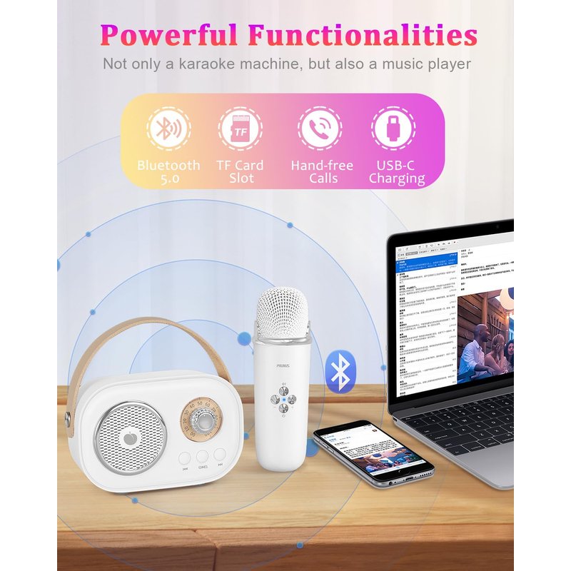Mini Karaoke Machine for Kids&Adults,Portable Bluetooth Speaker with 2 Wireless Microphones and Stereo Sound Enhanced Bass,Gifts for Girl 3 4 5 6 7 8 9 10 11 12+ Years Old Home Party (White)