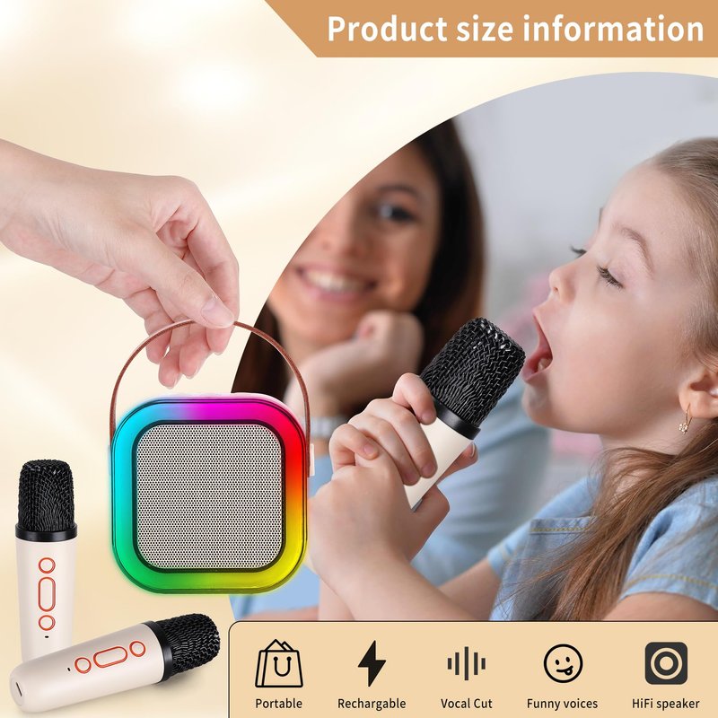 - ♫ Compact & User-Friendly-Our mini-sized karaoke machine is easy to carry, allowing your child to take their music wherever they go. Easily switch between modes and adjust microphone, echo, and music volume with ease.