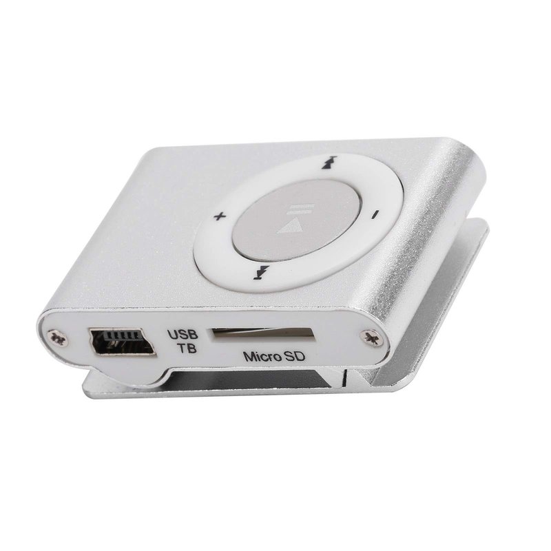 Mini MP3 Player, Portable Mini MP3 Player with Back Clip Sports MP3 Player with Earphone and USB Cable, Digital Media Player Built in Card Slot (Silver)