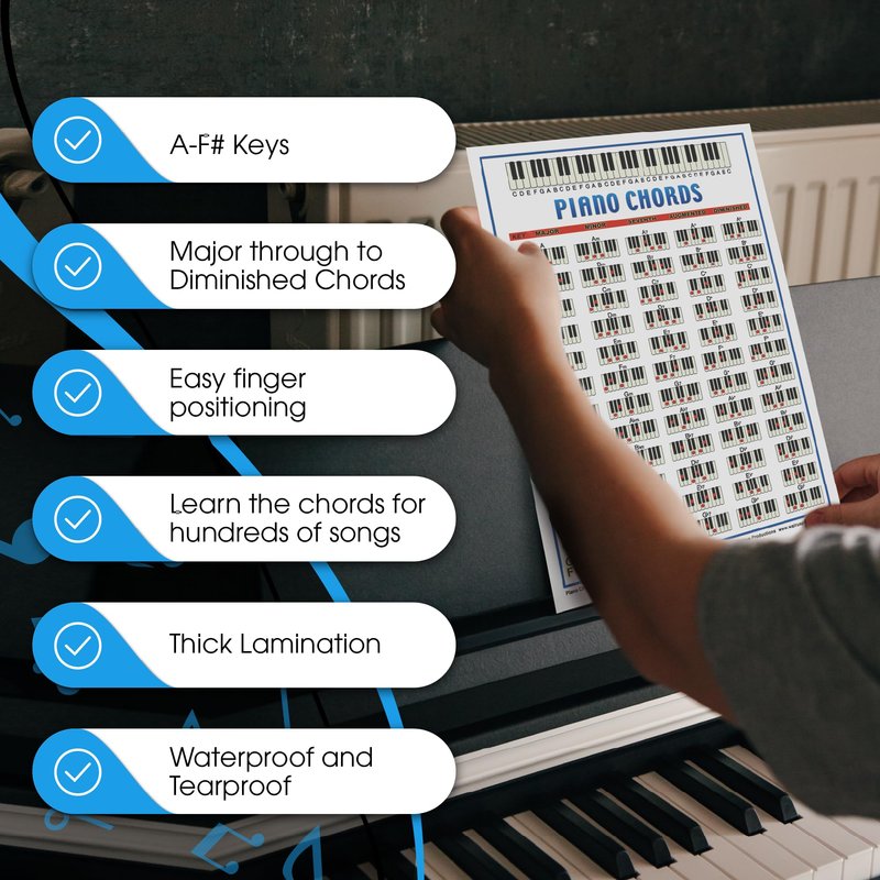- Perfect Gift - Knowing these chords will allow the prodigal pianist in your life to play hundreds of songs! Ideal at Christmas, on birthdays or purely to inspire a passion for music, our piano & keyboard chords poster is the perfect accompaniment for their new piano!