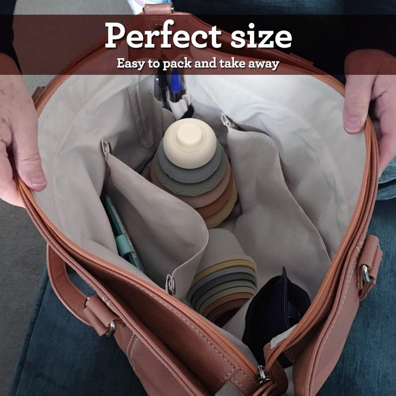 - Quality Guarantee - The stacking ring is made of high quality food grade silicone. It’s soft without any edge or corner. Smooth surface and chewable. It’s great for baby teething and biting in molar period. It is wonderful present for baby shower, Christmas and Birthday.