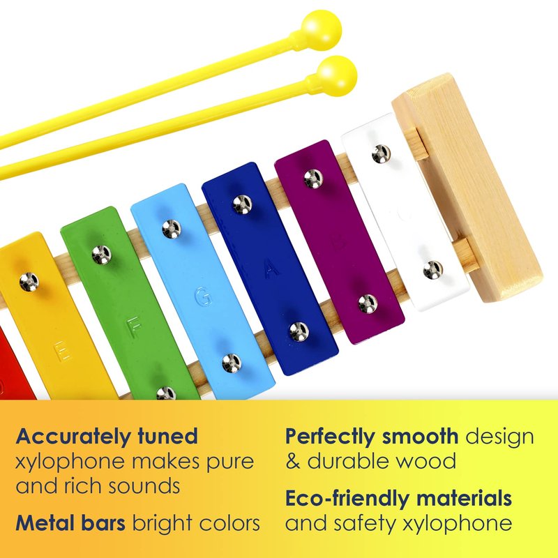 - AN EDUCATIONAL MUSICAL ADVENTURE FOR TODDLERS: Welcome your little one to the captivating world of music with our MiniArtis kids xylophone, specially designed for children aged 1-3. This glockenspiel xylophone boasts eight vibrant, color-coded notes, making it an ideal first musical instrument for toddlers. This classic xylophone introduces them to music at an early age, fostering creativity and a lifelong love for music, while also serving as a fantastic educational musical toy.