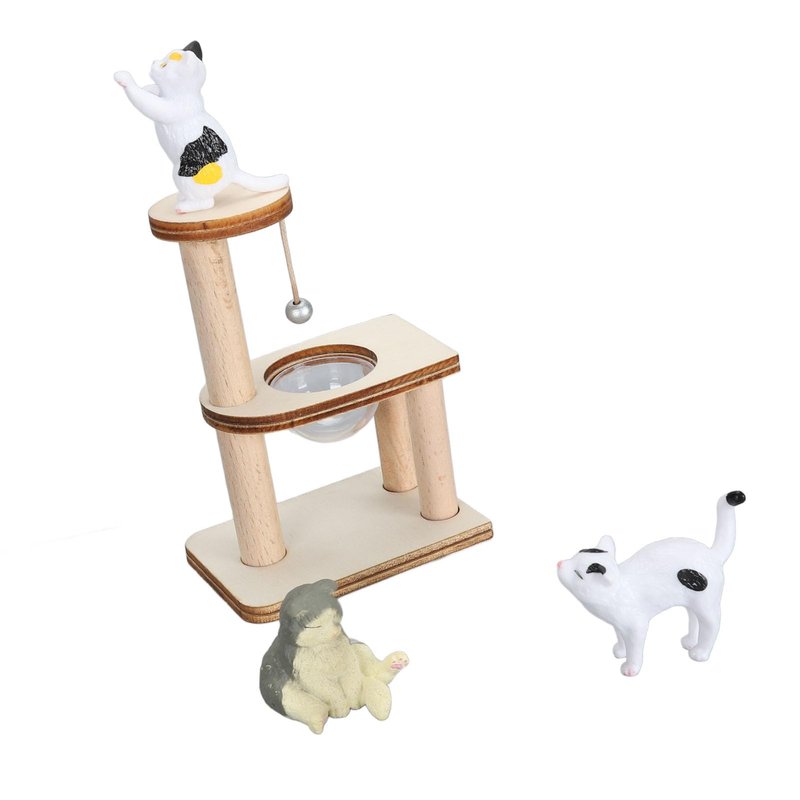 Miniature Cat Climbing Tower DIY Assembly, Cat Figurine Playset, Dollhouse Cat Tree, Unique and Eye Catching with Adorable Cat Tree, Cat Climbing Frame Dollhouse Toys