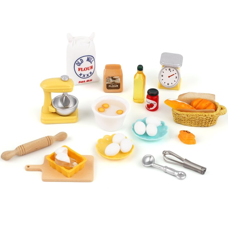 - Package Includes: You will receive a set of kitchen miniatures, with sufficient quantity and designs, including flour, egg, rolling pin, mixer, bowl, bread basket and so on, allowing you to play with your partners and bring happiness.