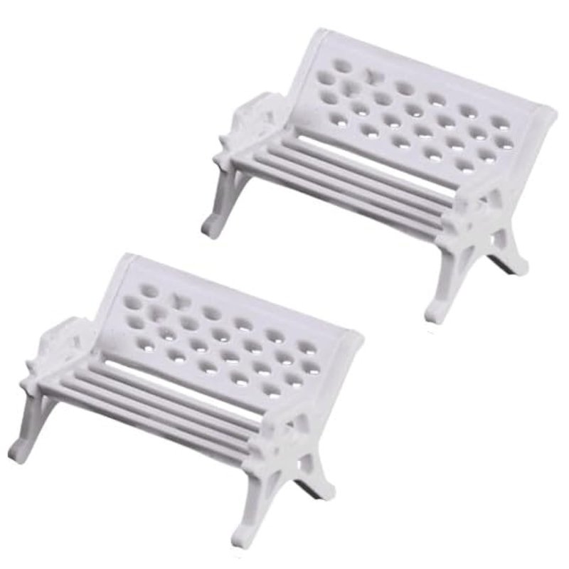 - Miniature Garden Decor: This set includes 2 pieces of miniature white park benches, perfect for adding a touch of charm to your fairy garden or dollhouse.