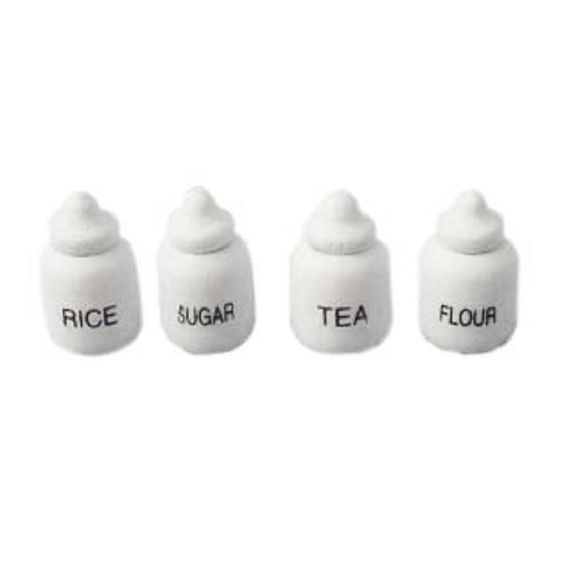 Miniature Sugar Shaker Candy Food Model Pretend Play 4 Jars Set Dollhouse Ornament Mini Scene Accessories Restaurant Candy Simulation 1:12 Scale Kitchen Food Accessories (Wooden)
