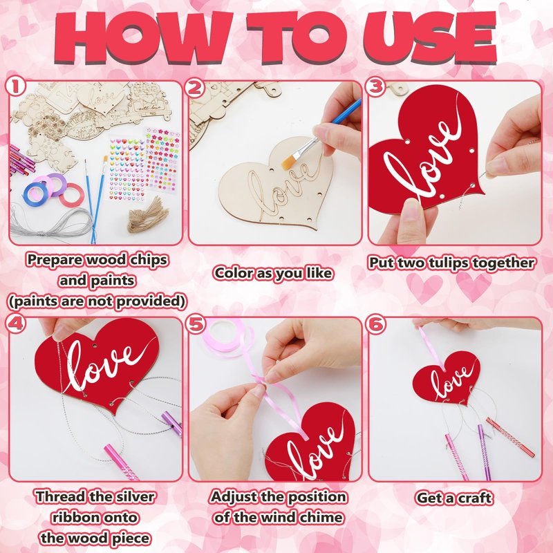 - Nice Crafting Gift: enjoy the fun of creation with our wind chime kit; With Valentine's Day wooden pieces, chime tubes, stickers, and multiple colors of ribbons, you can make your own home decoration to gift or keep