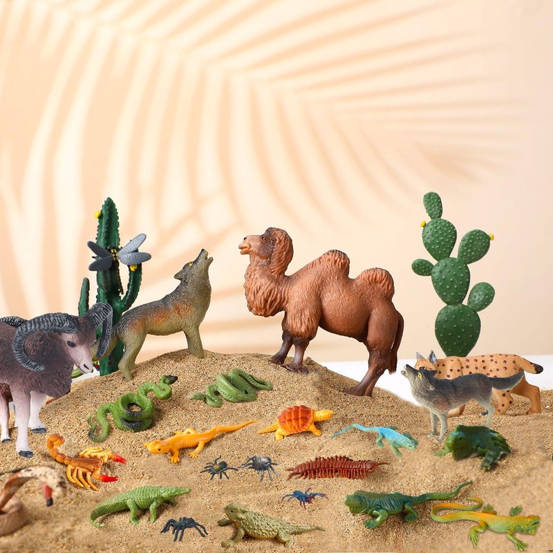 - Variety for Diverse Learning: with 25 figures in total, including 1 camel, 1 sheep, 1 lynx, 1 snake, 1 wolf, 2 different types of cactuses, and 18 fake insects, this set provides your child with an extensive array of miniatures for imaginative play, promoting cognitive development, and enhancing familiarity with different species