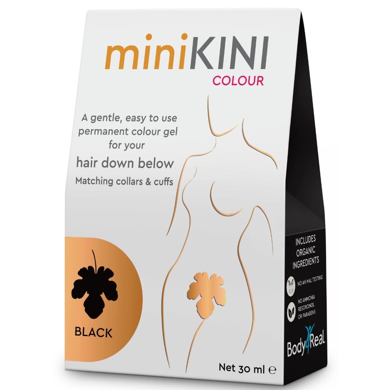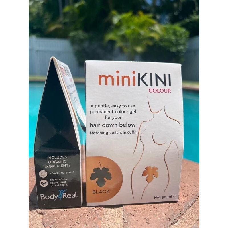 miniKINI Colour is a gentle formulation with Organic ingredients that colours pubic hairs. It is specifically formulated for use on the bikini area and does not contain harsh ingredients like Ammonia or Parabens. It is quick and easy to use; once you have done a patch test, mix the colours and leave on for 30 minutes (full instructions included). miniKINI comes in 3 colours: Natural Dark Brown (this is like a brown / black), Natural Dark Blonde and Black miniKINI Colour will not only cover gray hair but this easy to use gel colour also enables women to match their hair below to their hair on top. So a natural brunette who has coloured their hair blonde can now be blonde down below. It is also suitable for men who wish to colour their beards, moustache or chest hair. So women and men of all ages can now have matching collars & cuffs. The Dark Brown colour is suitable for use on Brown/Black hair. Normal hair colour would be too harsh to use in this sensitive area. 75% certified organic ingredients. Condensed Instructions. Before starting please read the full instructions which are contained with the product , as this contains important information which must be followed when using this product . ALWAYS carry out the sensitivity patch test before using the product.