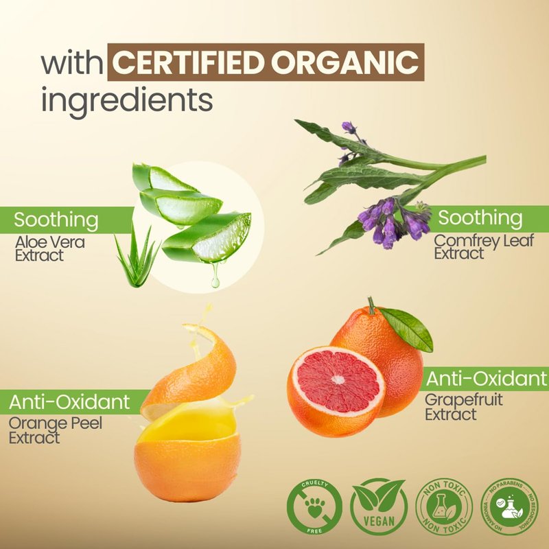 - Contains ORGANIC Ingredients: Aloe Vera, Grapefruit and Citrus Extract
