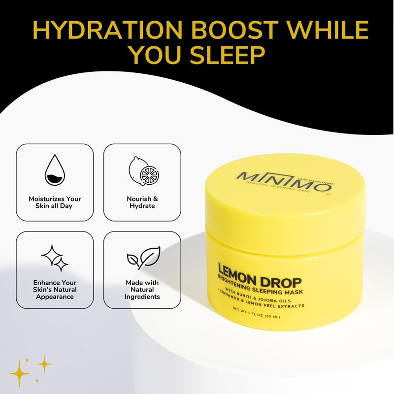 Unveil the true potential of your skin with the Minimo Skin Essentials Lemon Drop Overnight Sleeping Mask. Crafted with care and enriched with nature's finest ingredients, this luxurious sleeping mask is your key to a radiant, youthful complexion. Allow the powerful combination of Lemon Peel, Buriti Oil, and Jojoba Oil to work their magic while you slumber, leaving you with a refreshed, luminous appearance each morning.