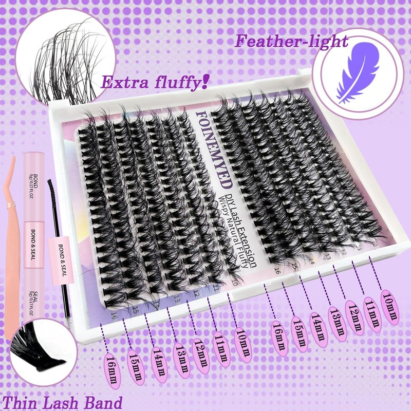 - 【Volume & Soft & No Burden】: FOINEMYED's lash clusters look just like real eyelashes, which adopt soft and feather-light synthetic silk fiber, have no kink and don’t fall apart, are more durable(5 times+) than normal cluster eyelashes and 100% cruelty-free!