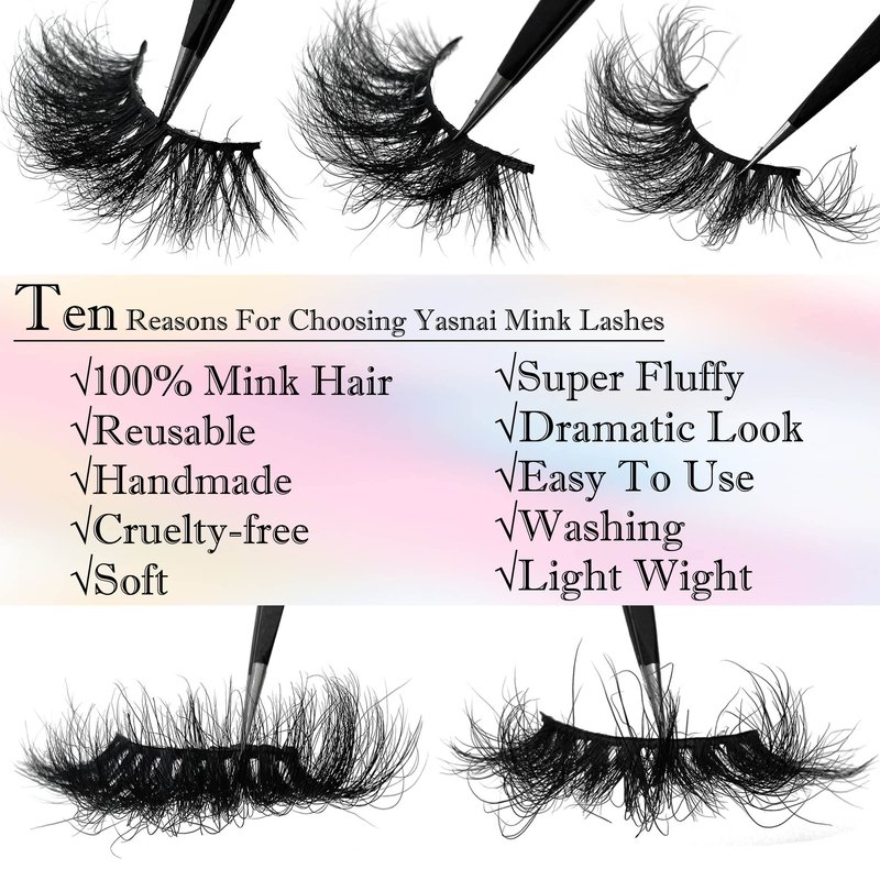 Mink Lashes 25mm Lashes Fluffy Yasnai Eyelashes Real Mink Lashes 5 Pairs Pack 9D Dramatic Long 25 mml Mink EyeLashes Wholesale