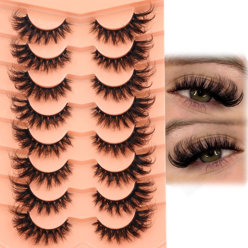 Mink Lashes Cat Eye Lashes Fluffy Fox Eye False Eyelashes Lashes Natural 6D D Curl Volume Fake Eyelashes Soft Handmade Lashes that Look Like Extensions Lashes Pack