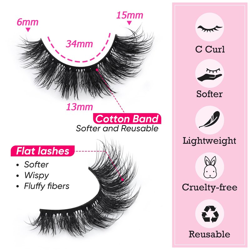 - 【Thin & Soft Lash Band】Mink eyelashes natural look with cotton eyelash band, lasting and comfortable. Natural false eyelashes, layered from root to root, give you the perfect 3D effect, and this cat eye flat lashes with matte deep black finish are similar as your natural lashes