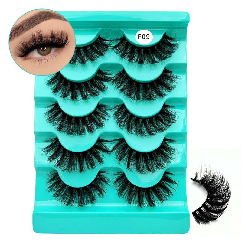 Mink Lashes Strip Eyelashes Fluffy Volume False Eyelashes that Look Like Extensions Glamour Wispy Curly Fake Lashes 5 Pairs Pack