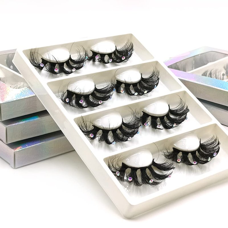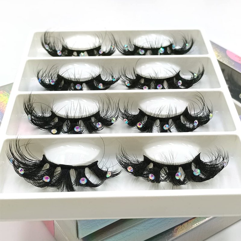 Mink Lashes with Glitter Rhinstones for Party Dramatic Diamond Decorative Gem Eyelashes(crystal)