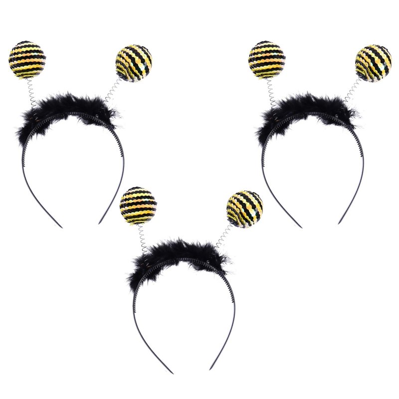 minkissy Bee Headbands for Party 3Pcs Bee Tentacle Headbands Antenna Ball Hair Hoop Sequins Costume Headband for Kids Adult