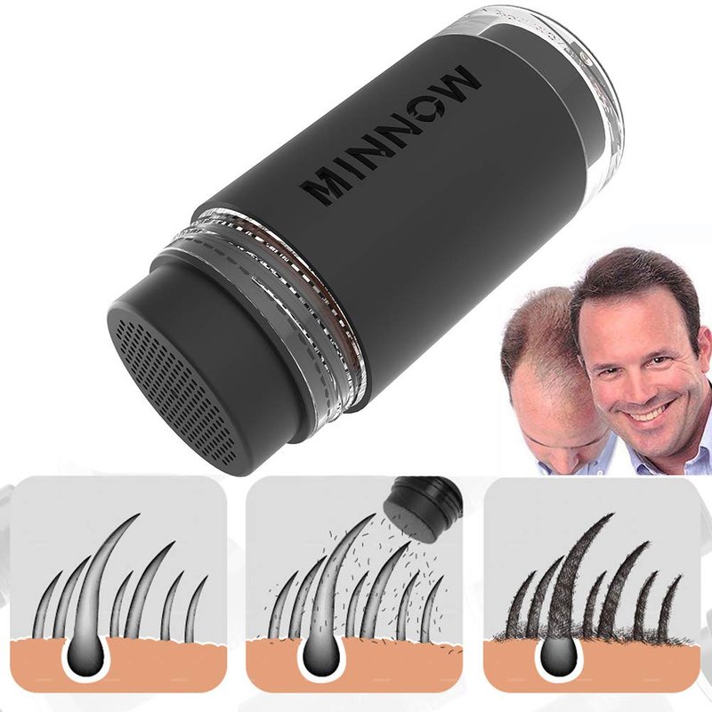 MINNOW Hair Building Fibers instantly give you the look of thicker, fuller hair. Made of natural, colored Keratin protein that is naturally statically charged, MINNOW Hair Fibers intertwine with your existing hair for a completely natural look.