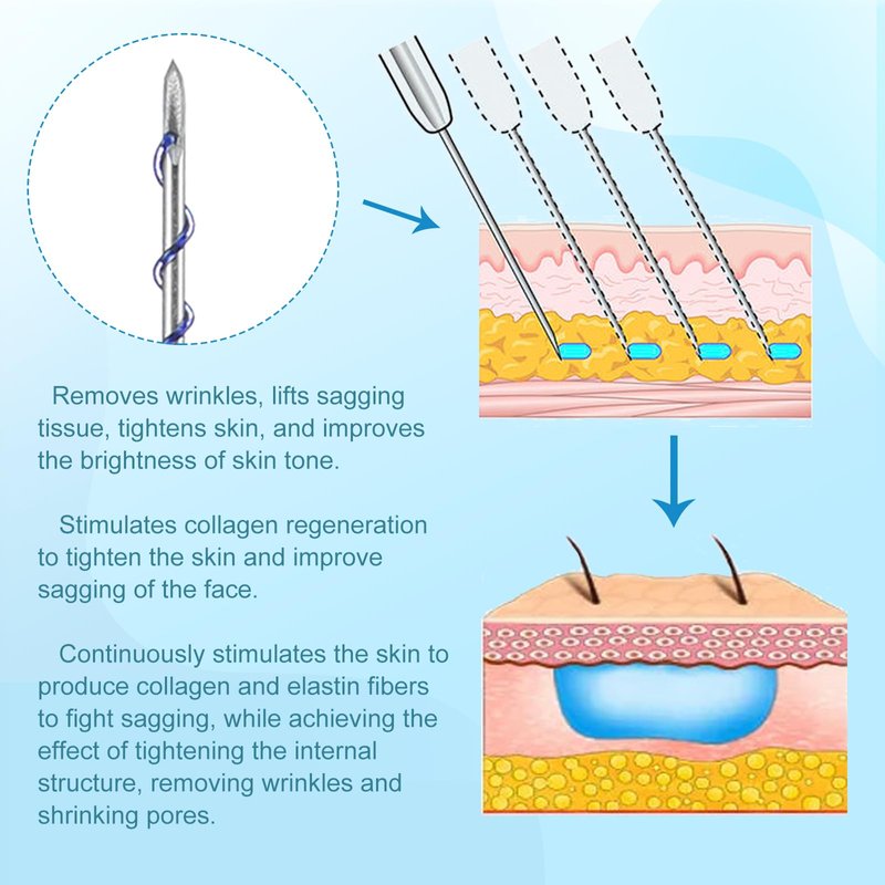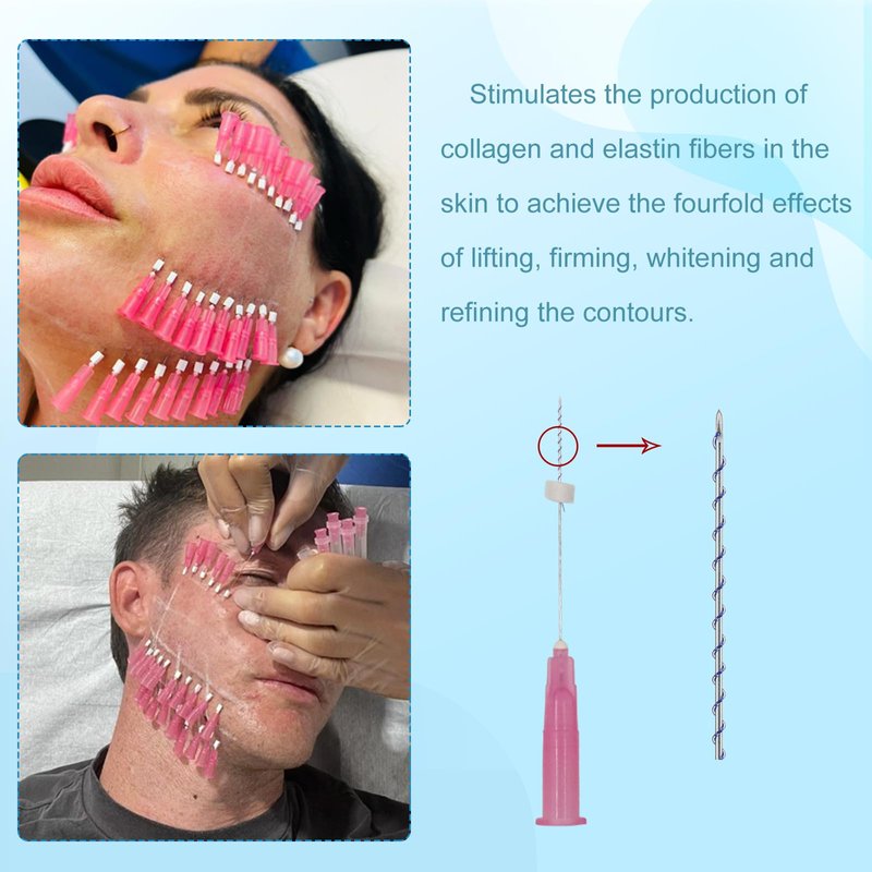 - Simple operation, safe and obvious effect. The implanted pdo threads have no damage to muscle tissue, absorb and degrade quickly, do not affect the normal movement of muscles, lift loose skin, improve skin color and enhance skin elasticity.