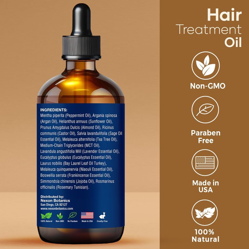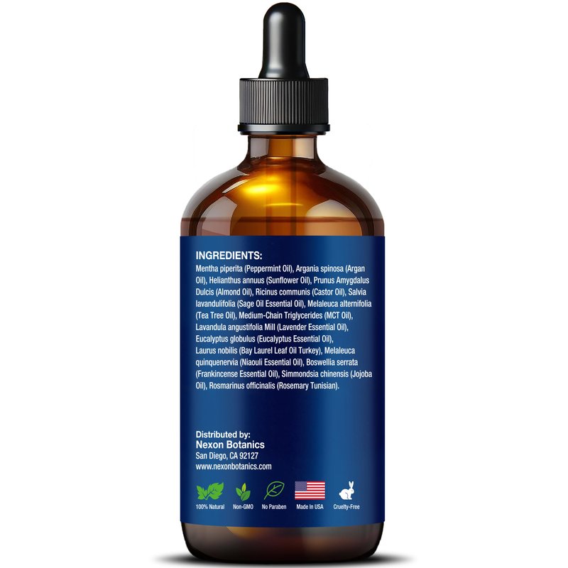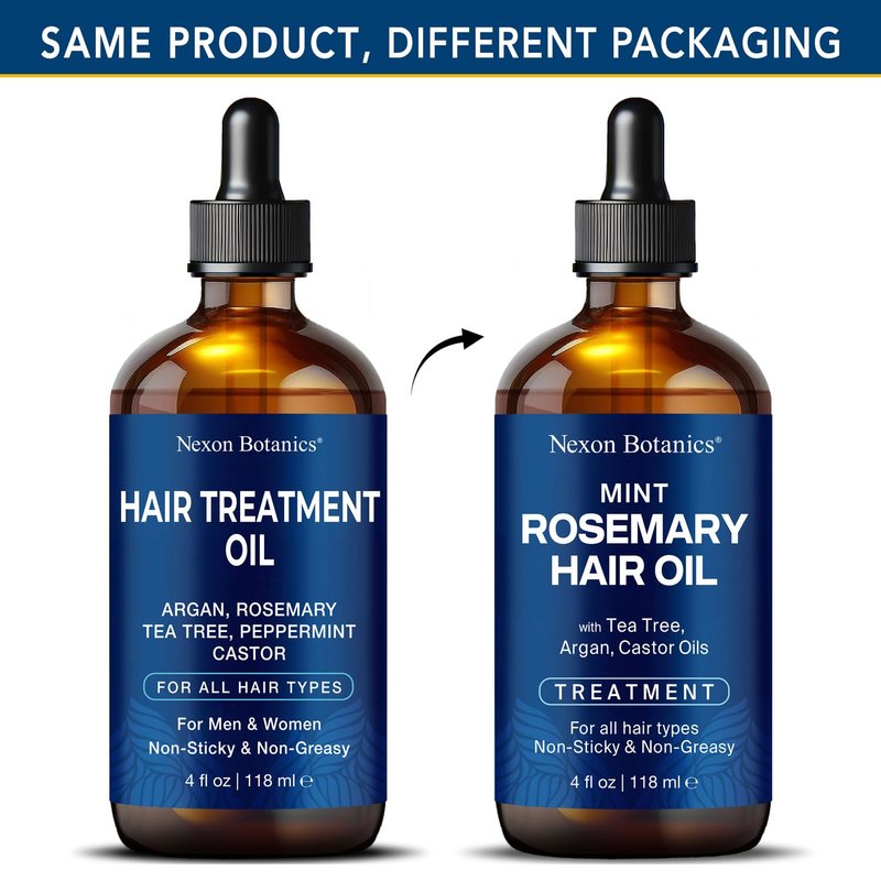 Mint Rosemary Hair Oil 4 fl oz - Hair Treatment Oil - Argan, Castor, Tea Tree - Hair Growth Oil for Damaged Hair, Curly Hair, Frizzy Hair, Dry Scalp - Men and Women - Nexon Botanics