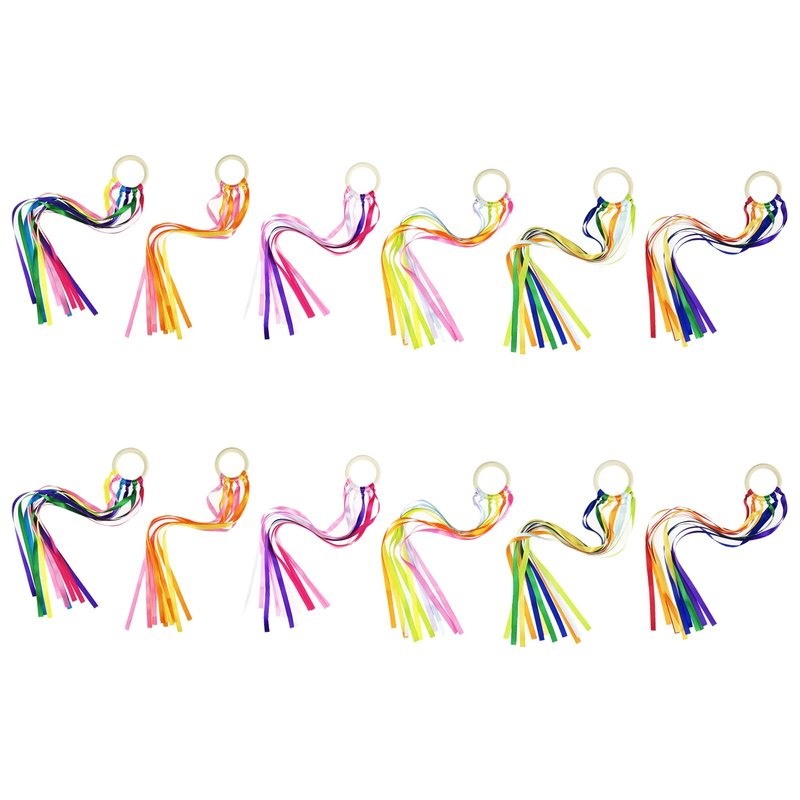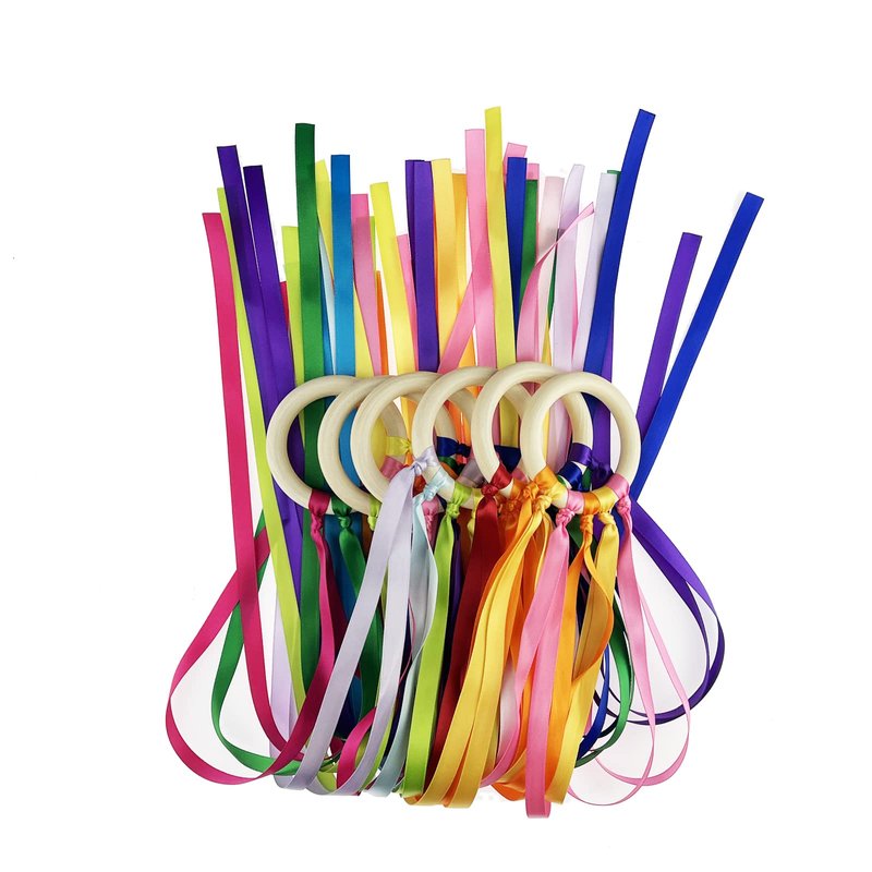 Miokun 24 Pack Hand Kite with Ribbon Streamer and Wood Ring Sensory Learning Educational Toy for Playroom Dance Birthday Gifts (24)