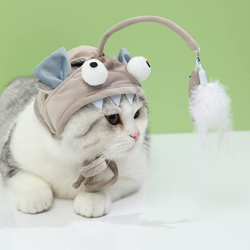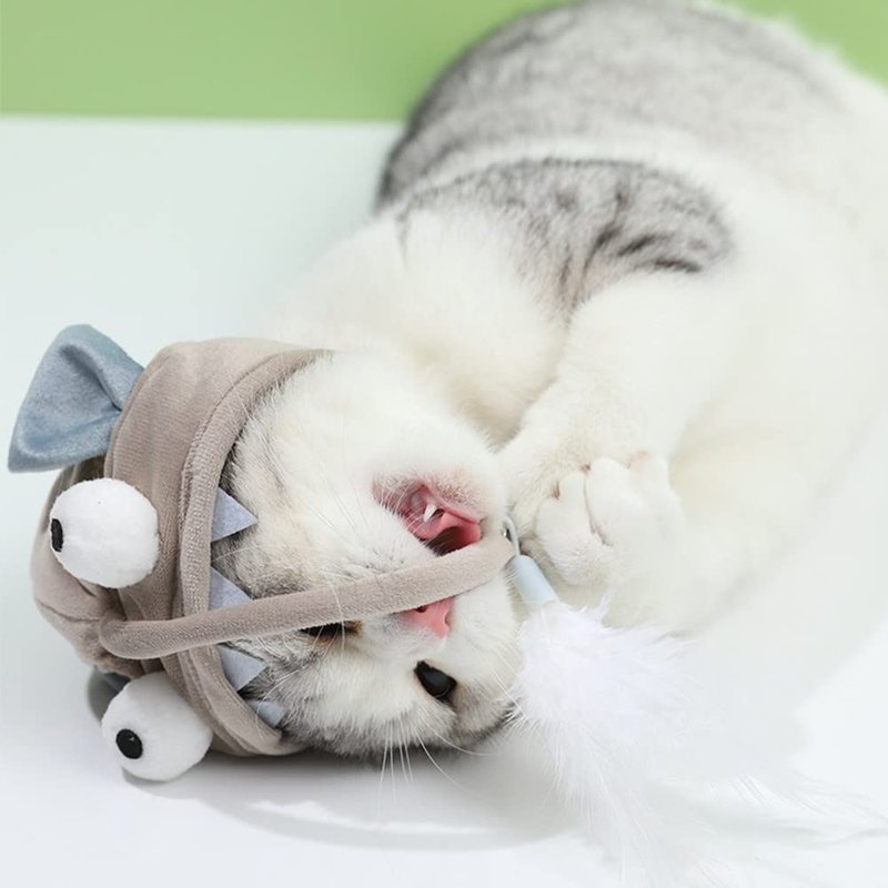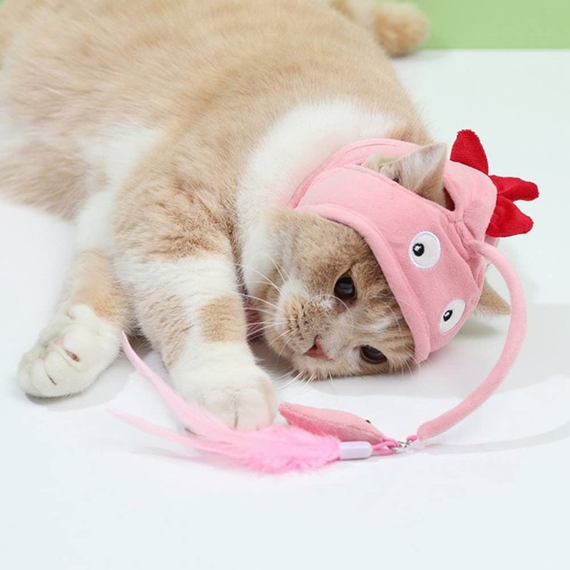 MiOYOOW Cat Feather Toys, Head-Mounted Cat Toy Interactive Cat Hat Feather Toy with Hook Design for Indoor Kitten Cats Play Chase