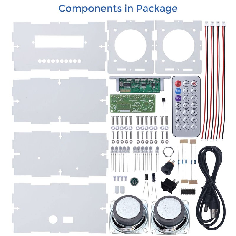 - 🎵【Easy Installation】: The bluetooth-compatable module board is soldered and can be used directly after connection. You only need to solder the Led flashing light kit, connect the wires, and assemble the shell. About power: 5V mobile phone charger or computer power supply can be used, the sound quality will be better when the current of the power supply is 2A.