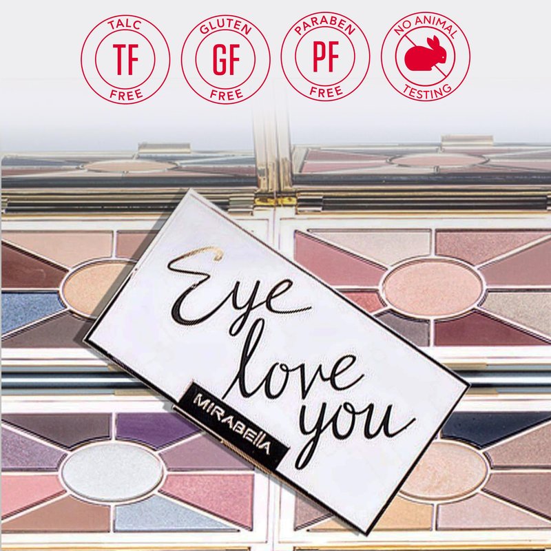 The Mirabella Eye Love You Eyeshadow Palette Mineral Collection is here to elevate your face and eye makeup game. Each innovative matte and shimmer eyeshadow palette offers a beautiful array of neutral ultra-pigmented pressed powders. Get ready to create stunning looks that will make heads turn. With 8 long-wear shadows, including a balance of shimmers and mattes, as well as a luminous highlighter, each nude eyeshadow palette is your ultimate tool for 360-degree total face use. Sculpt and illuminate your face, cheeks, and eyes with ease. From day to night, the Eye Love You eyeshadow palette collection has got you covered. Packed with a gorgeous array of light and dark, matte and shimmer pressed powders, the shade range in each makeup eyeshadow palette is flawless, allowing you to create barely-there natural looks or dramatic evening looks that will make a statement. Want to make those colors really pop? Apply our shadows wet for a full pigment, show-stopping finish that will leave everyone in awe. Eye Love You eyeshadow palettes are meticulously crafted and packed in a luxe enamel case with gold detailing, adding a touch of sophistication to your makeup collection. But it's not just about the stunning colors and luxurious packaging. Each colorful eyeshadow palette is paraben-free, gluten-free, animal cruelty-free, and talc-free. We believe in clean, high-quality natural eyeshadow that nourishes your skin while delivering exceptional performance. Key ingredients like light-reflecting mica, moisturizing jojoba and triglyceride, and silky texture-enhancing silica ensure that each application is smooth, blendable, and long-lasting. Pro Tip - To maintain consistent shadow textures over time and extend the life of your palettes, dedicate one side of each color pan for wet applications and the other side for dry applications.
