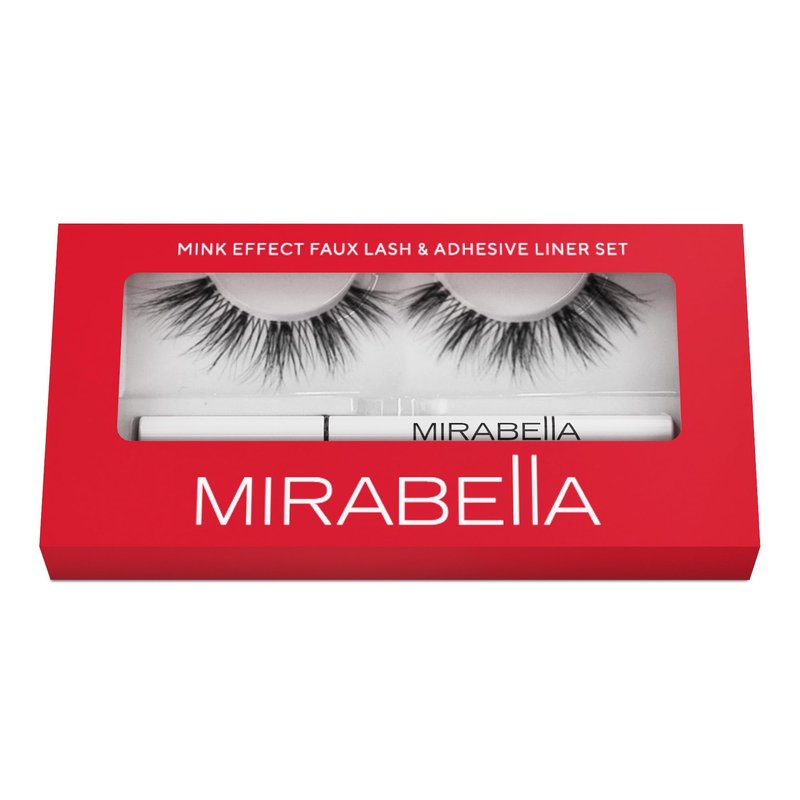 Mirabella Mink Effect Faux Lashes & Self-Adhesive Liner Set, Lightweight Natural-Looking False Eyelashes with Clear Glue Eyelash Pen, Cruelty-Free & Non-Irritating Synthetic Reusable Eyelashes
