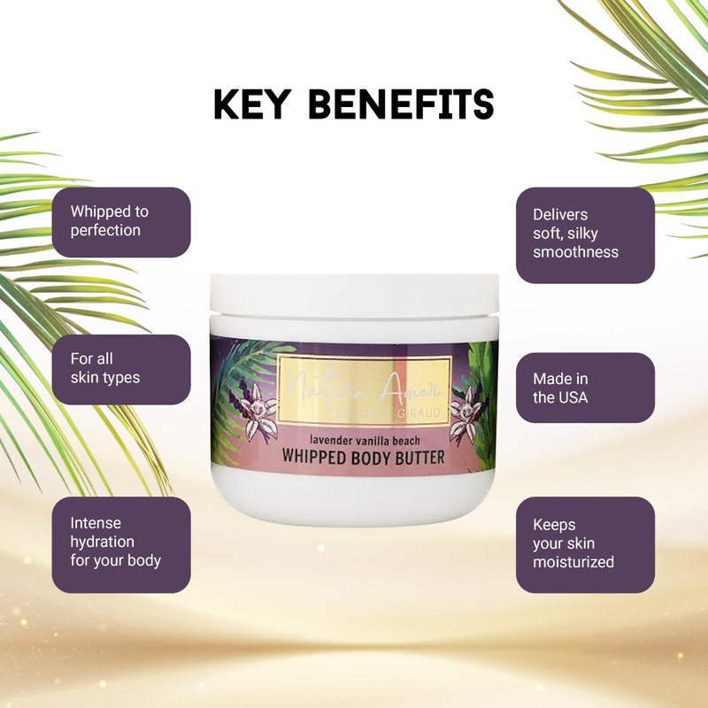 Indulge your skin with Joyce Giraud Whipped Body Butter. This extra creamy and ultra-hydrating body butter nourishes your skin, providing intense hydration and restoring softness and smoothness. Infused with Joyce's Pure4 oils—Buriti, Maracuya, Argan, and Moringa—this luxurious formula absorbs quickly without leaving a greasy residue, making it perfect for all skin types. Whether you're in the tropical sun or cold weather, this body butter keeps your skin moisturized and glowing. Made with love and free from harsh chemicals, it's the ultimate clean beauty essential for daily use.