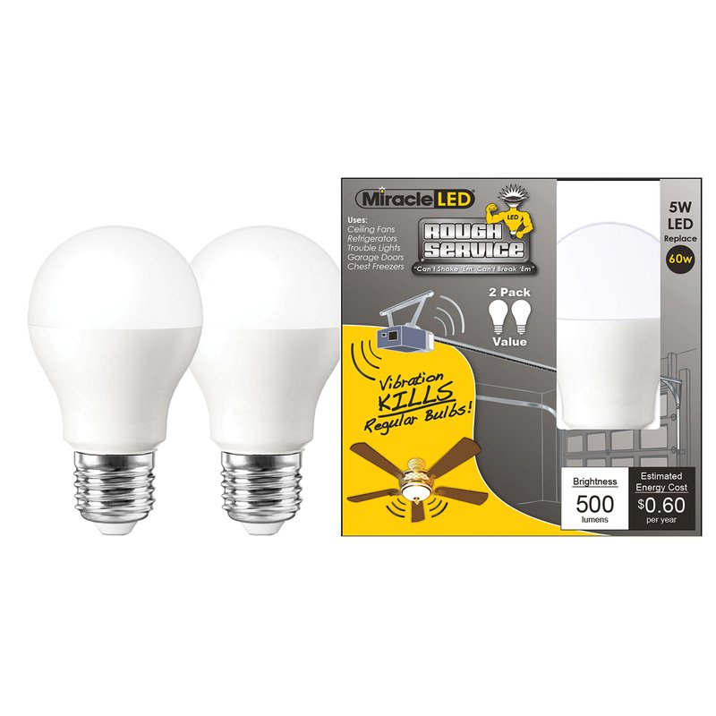 MiracleLED 606542 Rough Service Led Energy Saver Household Replacement Light Bulb Areas Like Garage Door/Shop/Fan, Cool Bright White Color, 2-Pack