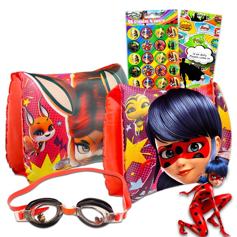 - Miraculous Ladybug Bath Toys Set - Miraculous Ladybug Summer Pool Toys Bundle with Inflatable Arm Floaties, Goggles, Stickers and More (Miraculous Ladybug Beach Toys).