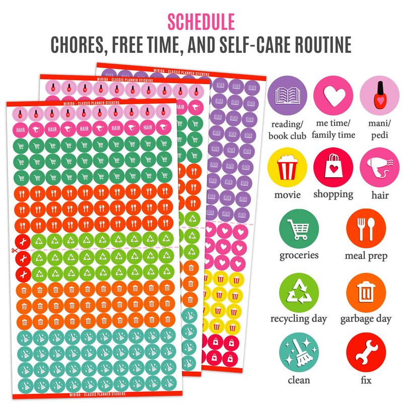 Mirida Planner Stickers – 1867 Daily Icons and Inspirational Stickers for Adults Calendar, Classic Pack for Budget, Work, and Holidays