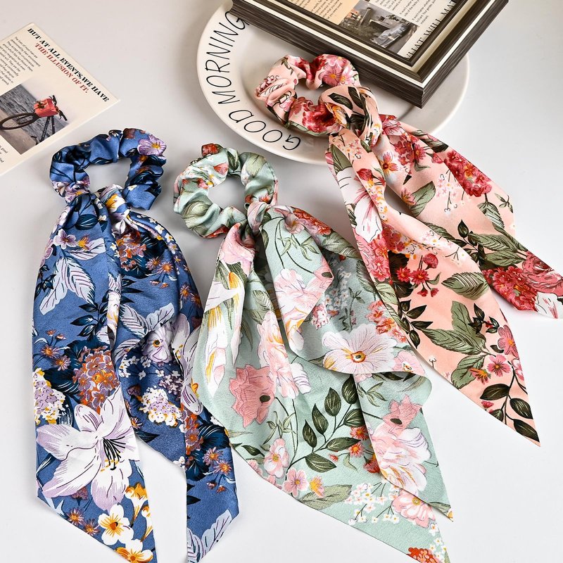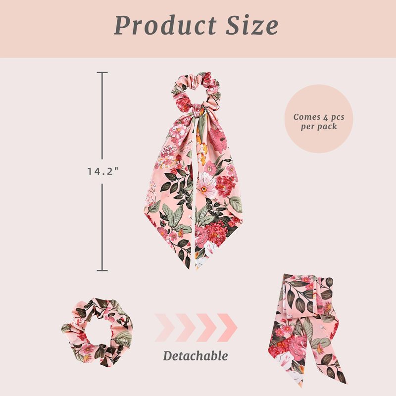 - Delicate and Practical Design: this satin floral ribbon hair scrunchies comes with an elasticated rubber band and a long hair band to help you create a variety of hairstyles, you can use the ribbon to braid and tie a ponytail, suitable for all hair types