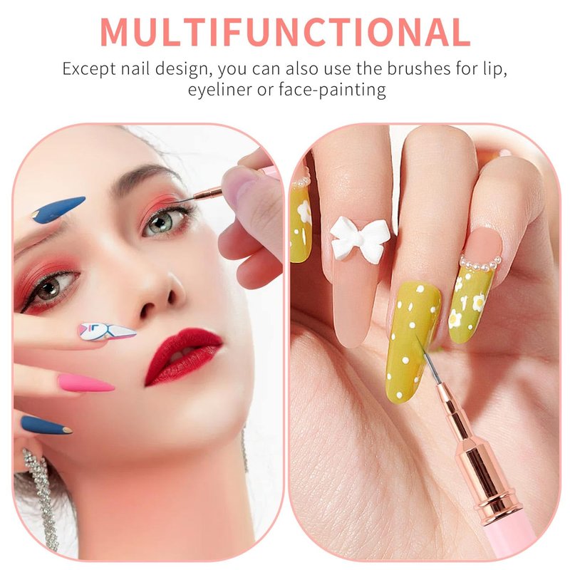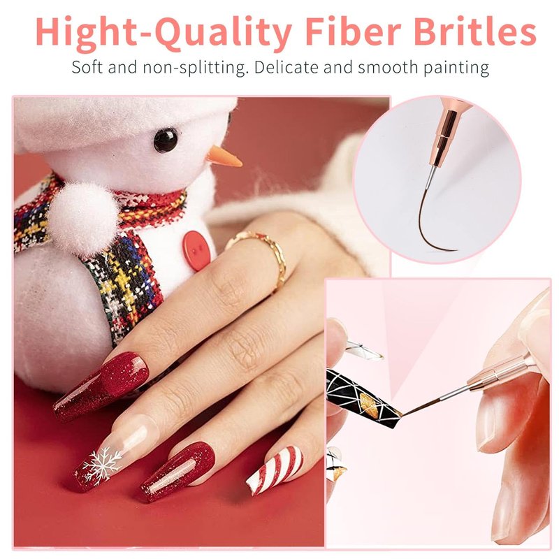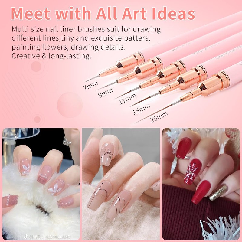 These nail art liner brushes are made of high-quality nylon and fiber, which are soft and flexible, suitable for various nail art techniques. The fine and dense bristles provide good control and precision, allowing you to create delicate lines, dots, lines, flowers, and other patterns with ease. The brushes are suitable for both professional nail technicians and DIY nail art lovers. They are easy to clean and store, and can be used for many times. The package includes 5 different sizes of brushes, allowing you to choose the appropriate size for different nail art designs. Whether you are a beginner or an experienced nail artist, these liner brushes are a great tool to help you create beautiful and unique nail art designs.