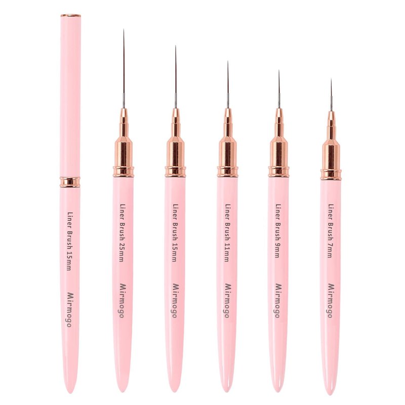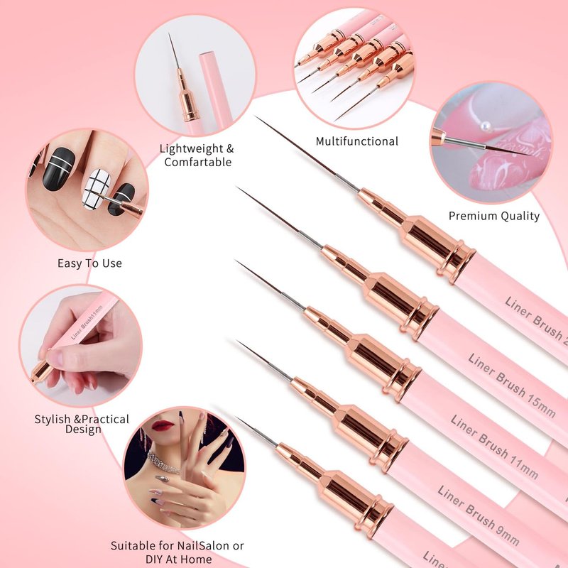 Mirmogo Nail Art Liner Brushes,5pcs Nail Design Brush Set, Nail Dotting Drawing Tool for Long Lines,Thin Details, Fine Drawing, Delicate Coloring, Elongated Lines,Sizes 7/9/11/15/25mm(Pink)