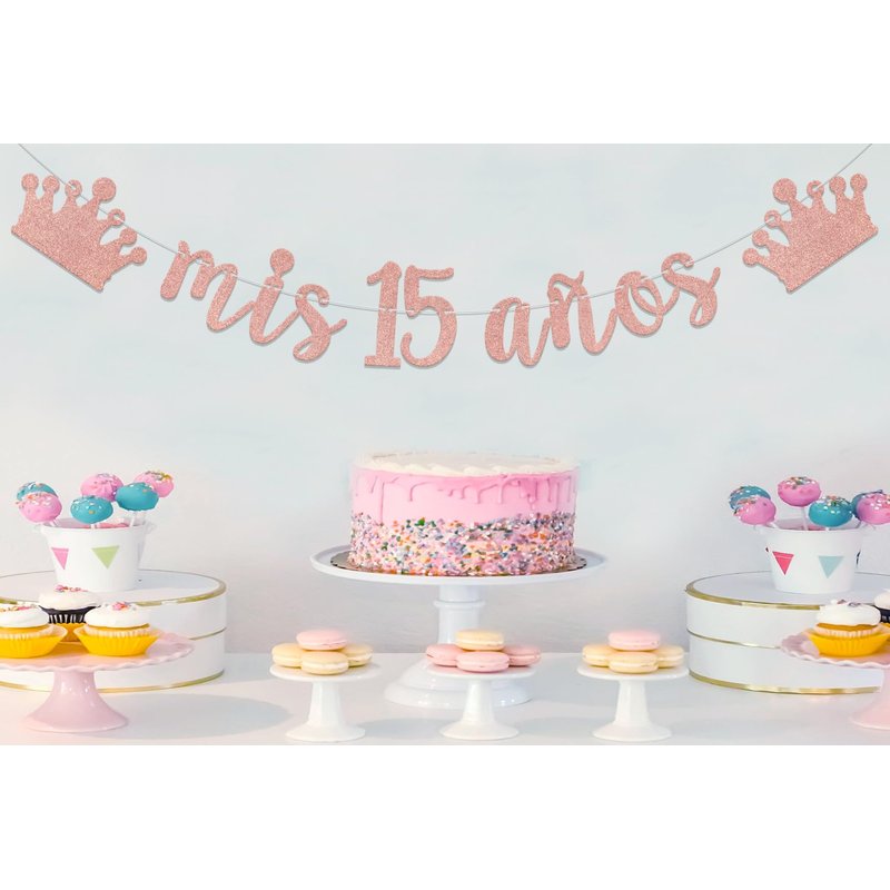 mis 15 años Banner, Mis Quince Años Sign For 15th Birthday Party Decoration For Girls, My 15th Birthday Party Decorations Supplies Rose Gold Glitter