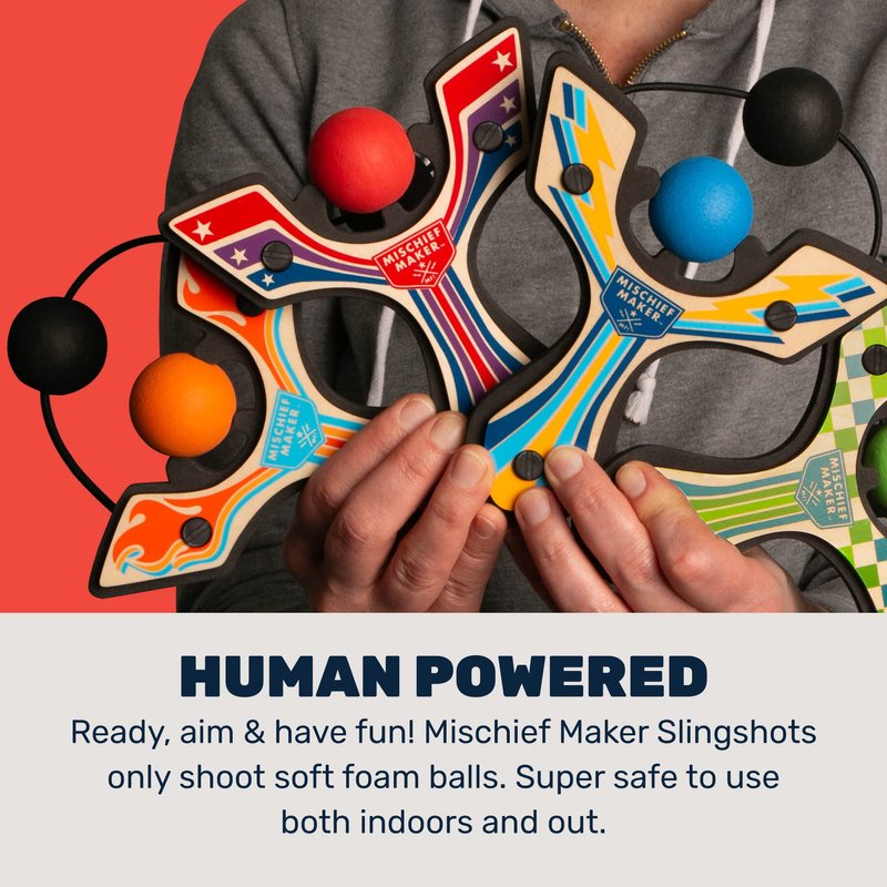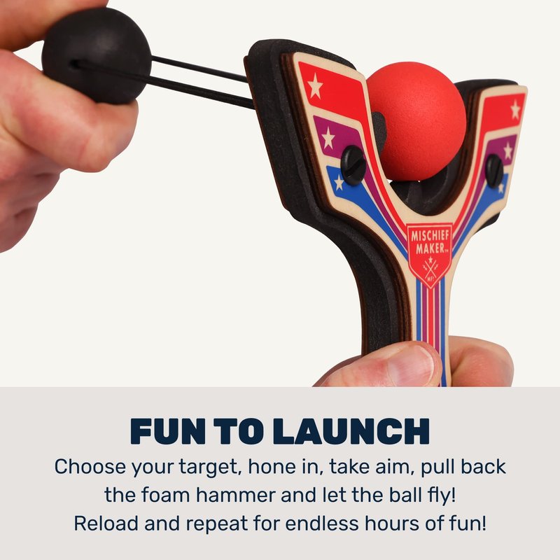 Mischief Maker® Racing Wooden Toy Slingshot and Soft Foam Balls