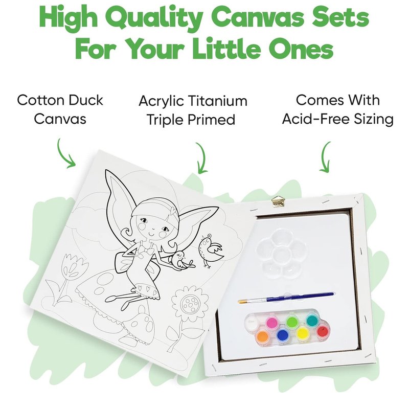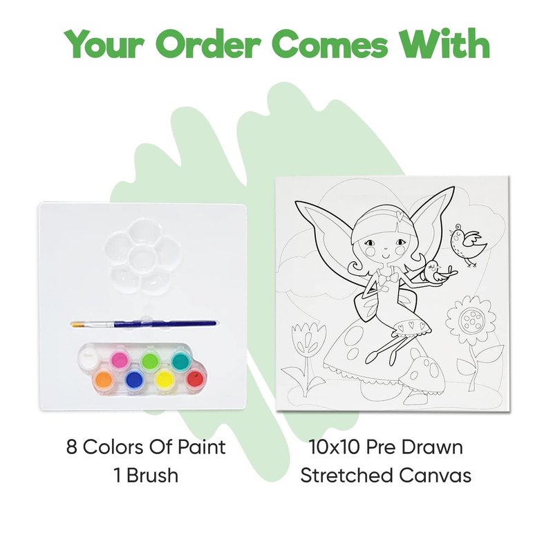Misco Toys Canvas Paint Party Kits, 11 Piece Art kit Pre-Drawn Outline Canvas for Paint and Sip 8 Colors and Brush Included, Great Gift for Kids 4+ and Adults Too! (Fairy)